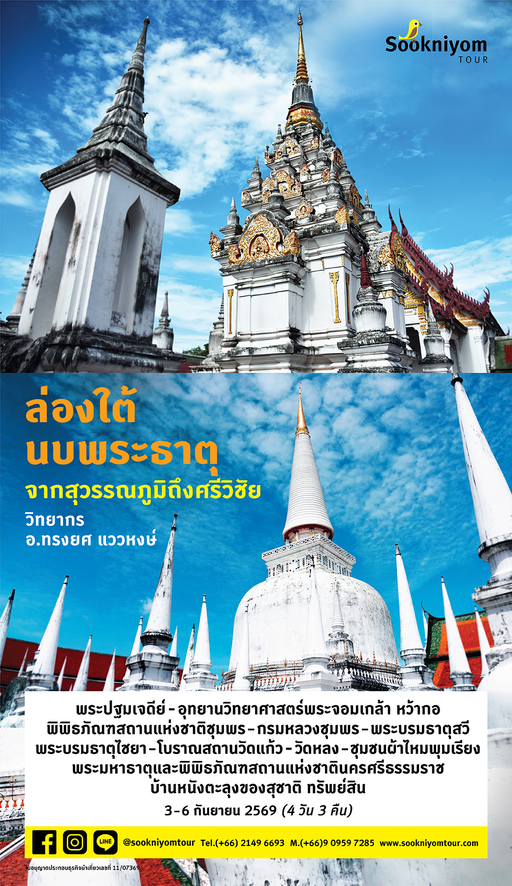 พระปฐมเจดีย์ – พิพิธภัณฑสถานแห่งชาติชุมพร – พระธาตุสวี – พิพิธภัณฑ์พระธาตุสวี – เมืองโบราณไชยา – พระธาตุไชยา – โบราณสถานวัดแก้ว – วัดหลง – ชุมชนผ้าไหมพุมเรียง – พระบรมธาตุนครศรีธรรมราช – พิพิธภัณฑสถานแห่งชาตินครศรีธรรมราช – บ้านหนังตะลุง