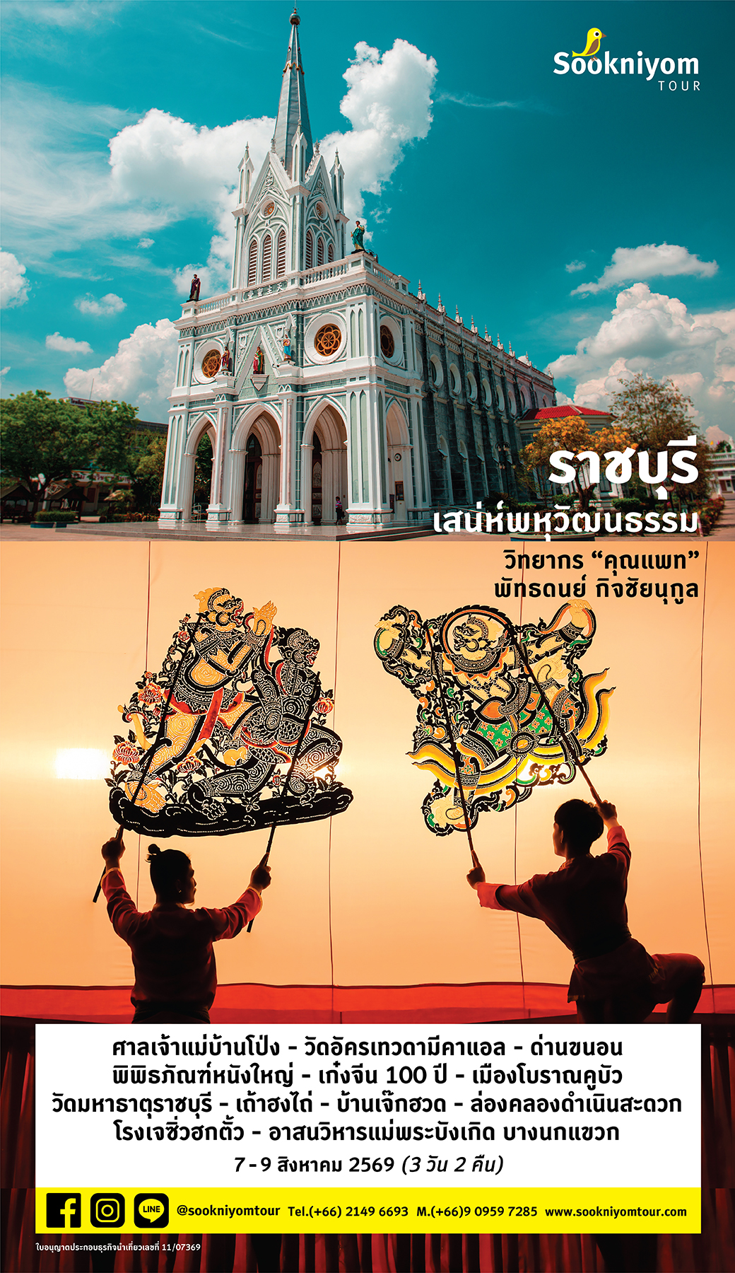 ราชบุรี เสน่ห์พหุวัฒนธรรมแห่งสายน้ำแม่กลอง วิทยากร “คุณแพท” พัทธดนย์ กิจชัยนุกูล (ศาลเจ้าแม่บ้านโป่ง - วัดม่วงบ้านโป่ง - วัดอัครเทวดามีคาแอล - โพธาราม - ด่านขนอน - พิพิธภัณฑ์หนังใหญ่ - เก๋งจีน 100 ปี - เมืองโบราณคูบัว - วัดมหาธาตุราชบุรี - พิพิธภัณฑ์สถานแห่งชาติราชบุรี - เถ้าฮงไถ่ - บ้านเจ๊กฮวด - ล่องคลองดำเนินสะดวก - โรงเจซิ่วฮกตั้ว - อาสนวิหารแม่พระบังเกิด บางนกแขวก)