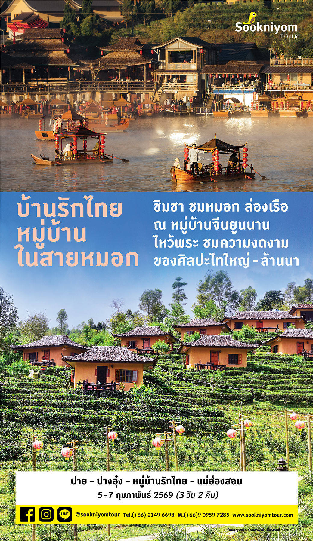 บ้านรักไทย หมู่บ้านในสายหมอก (ปาย – ปางอุ๋ง – หมู่บ้านรักไทย – แม่ฮ่องสอน) ชิมชา ชมหมอก ล่องเรือ ณ หมู่บ้านจีนยูนนาน เที่ยววัดไหว้พระ ชมความงดงามของศิลปะไทใหญ่ - ล้านนา วันที่ 5-7 กุมภาพันธ์ 2569 (3 วัน 2 คืน)