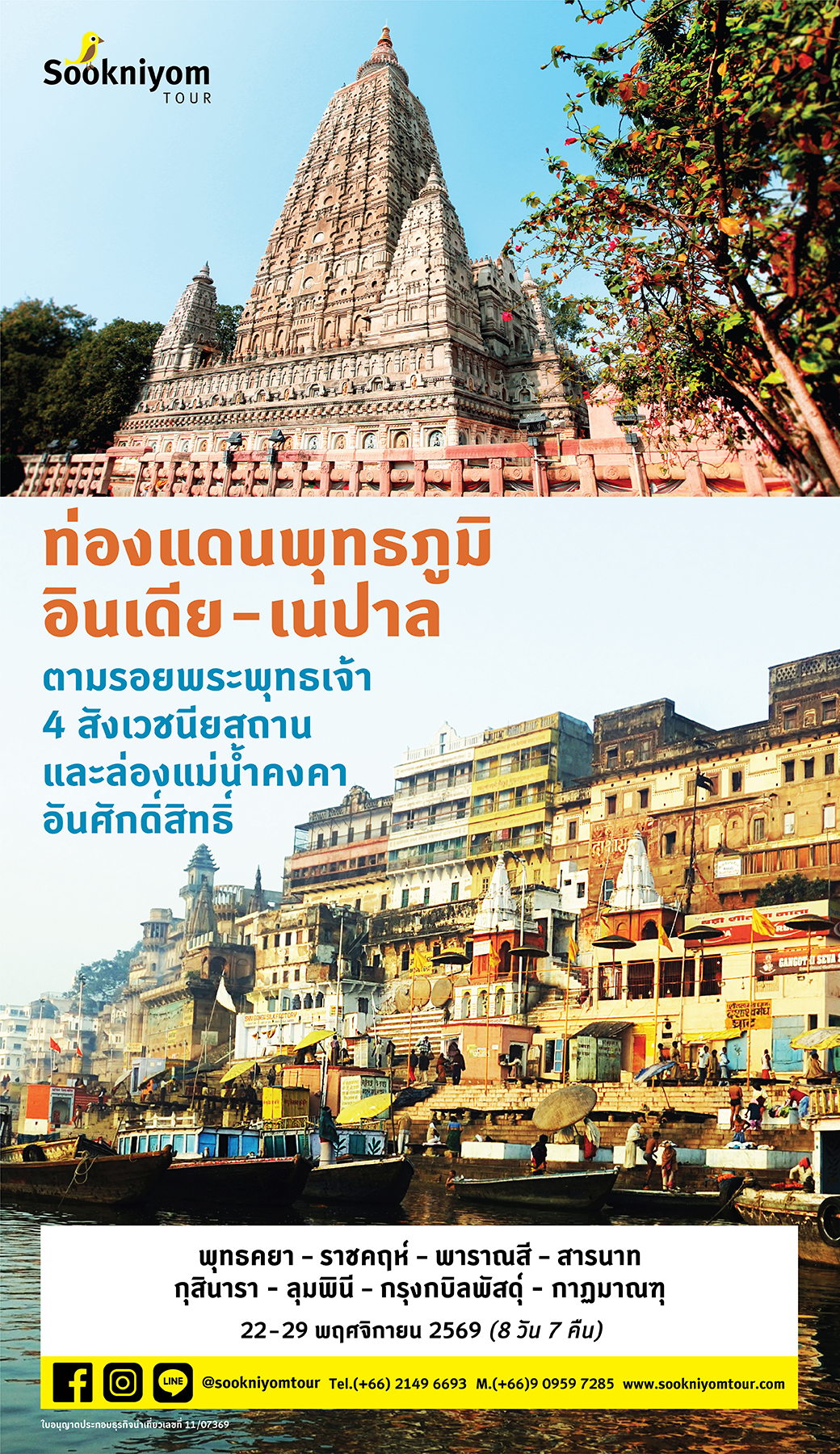 พุทธคยา – สารนาท – ราชคฤห์ – พาราณสี – กุสินารา – ลุมพินี – กบิลพัสดุ์ – เทวทหะ – กาฐมาณฑุ
